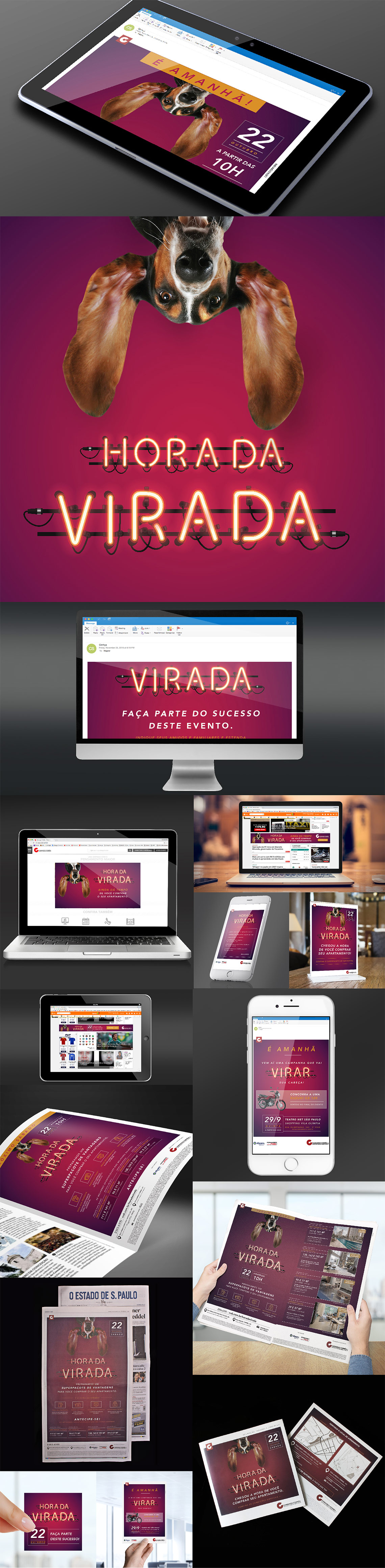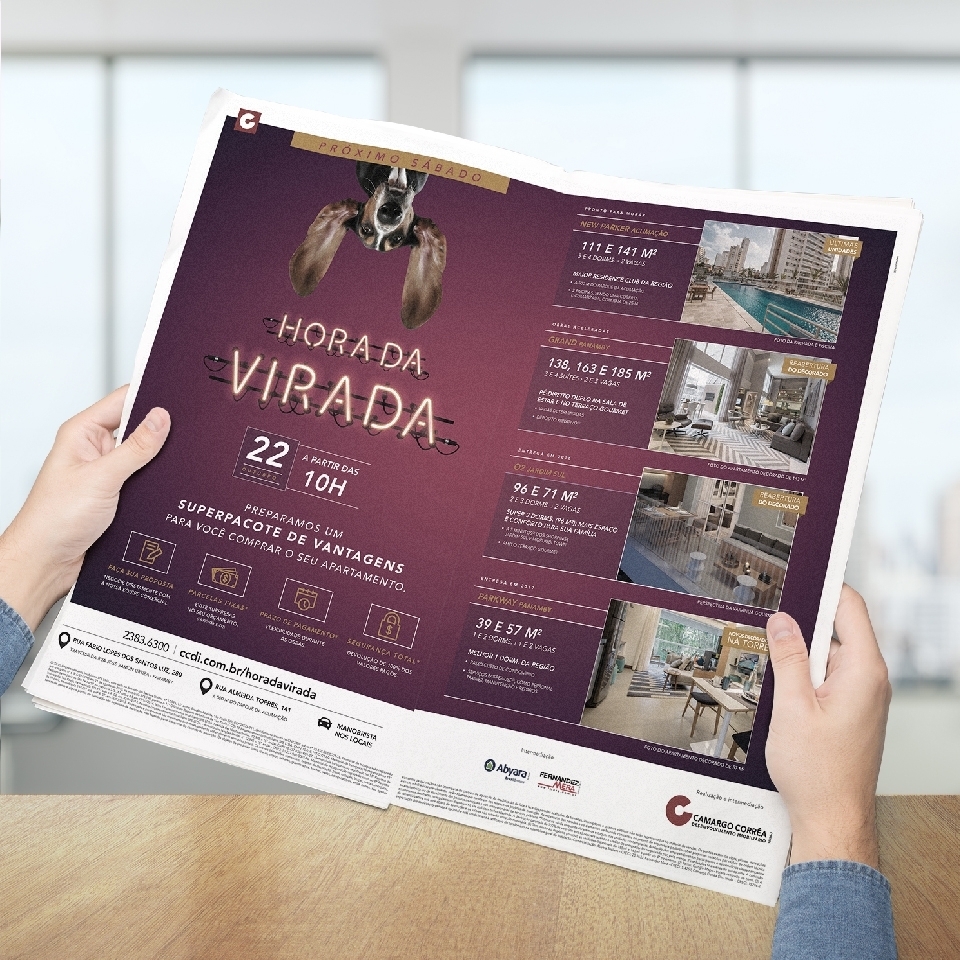 Ao todo essa campanha imobiliária somou 90 materiais criados e produzidos, como anúncios nos principais jornais da cidade, e-mails marketing para clientes e corretores, materiais digitais, folders, entre outros.