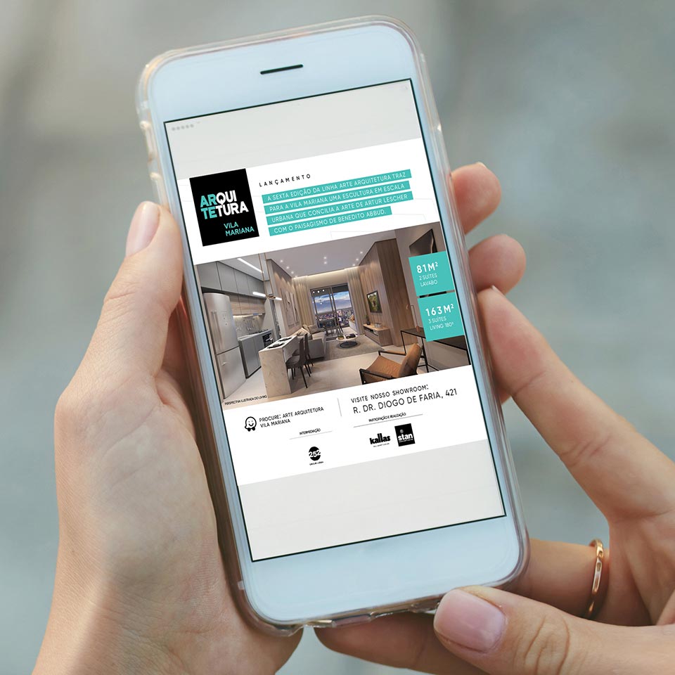 O Arte Arquitetura Vila Mariana tem como um dos maiores diferenciais uma obra de arte na escala urbana, localizada na empena do edifício e bloqueada pelo artista artístico consagrado Artur Lescher. Os traços modernos da obra inspiraram ou projetaram a campanha, em uma estratégia para expandir o conceito de produto e a conexão entre empreendimento e arte, valorizada pelos compradores.