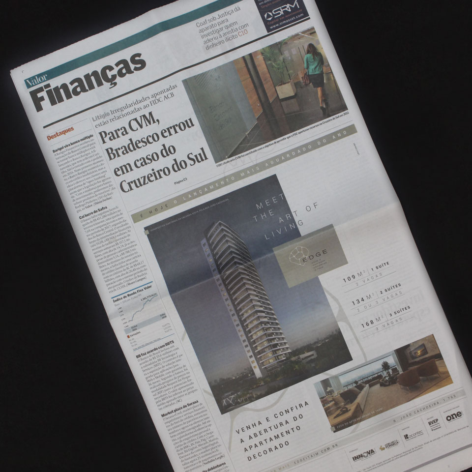 A estratégia de comunicação do EDGE envolveu mídias variadas do digital ao offline. Entre os anúncios no Estadão, um de página dupla foi publicado no dia do lançamento. A campanha se desenvolveu com um maravilhoso estande de vendas; apresentação para meeting dos corretores; direção e roteiro do vídeo; um livro de capa dura para os clientes; adwords; faceleads; posts em mídias sociais; campanhas de e-mail marketing; convites; entre outros.