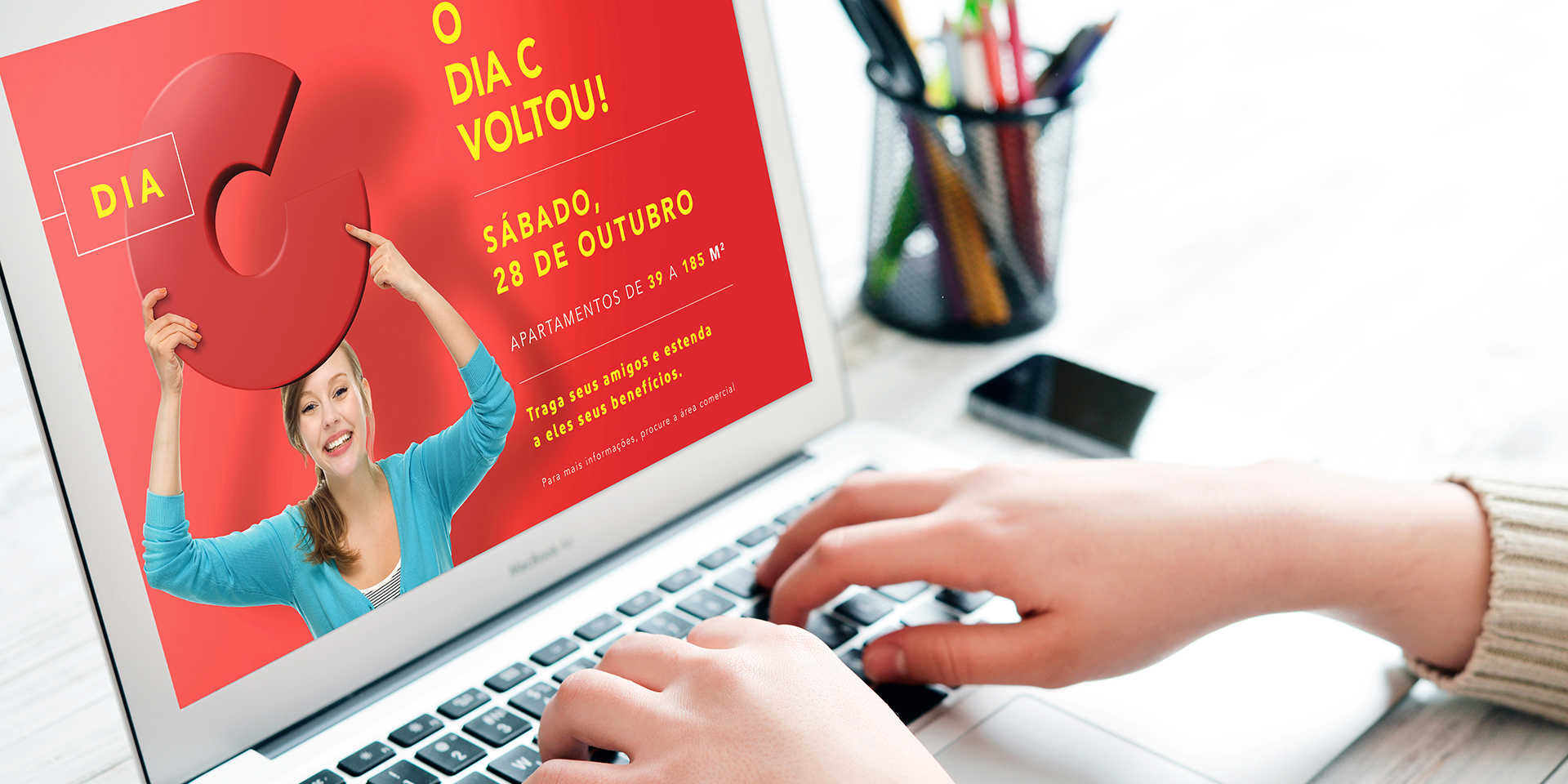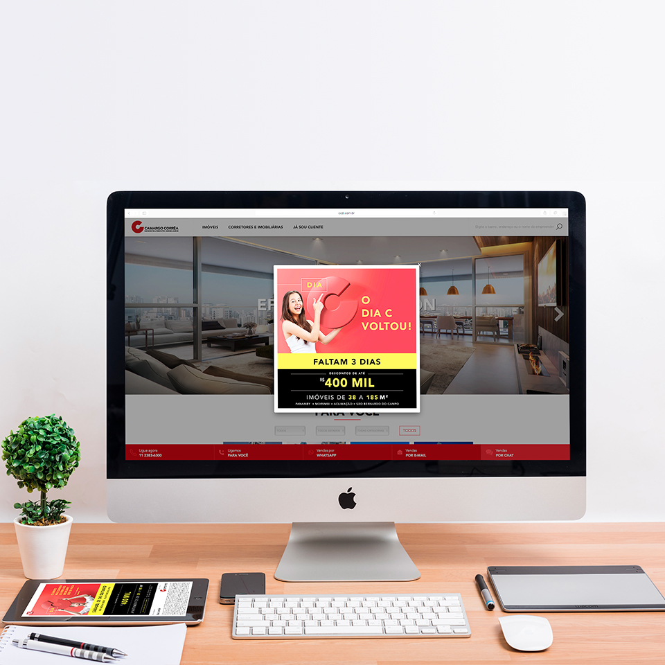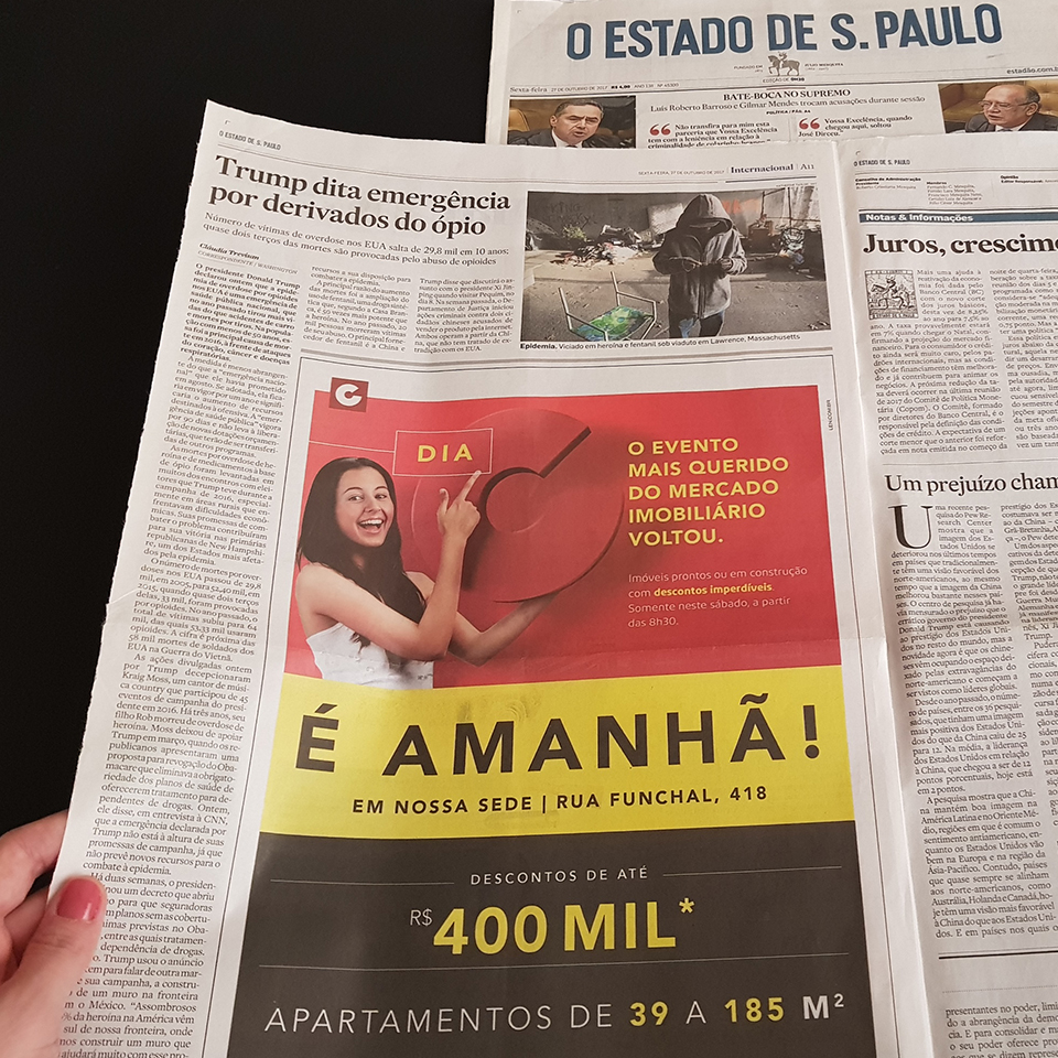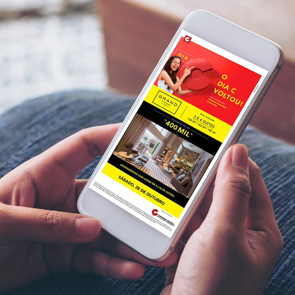 A comunicação que definimos como “varejo elegante” e a assinatura, que é, ao mesmo tempo, um anúncio para os clientes e um grito de guerra para os corretores – “O Dia C voltou!” –, ajudaram a engajar as equipes comerciais e a atrair centenas de pessoas para realizar o sonho de comprar um imóvel. Realizado na sede da CCDI pela primeira vez, o evento disponibilizou apartamentos novos de 39 a 185 metros quadrados, com descontos de até R$ 400 mil.
