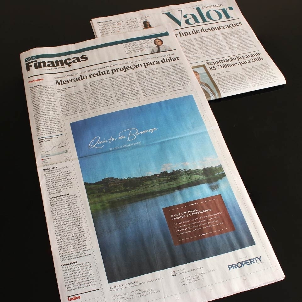 Um empreendimento espetacular tem que ter uma comunicação à altura. Assim, logo no começo deste trabalho recomendamos o rejuvenescimento da marca, reposicionando a Quinta da Baroneza para alcançar um público mais amplo.